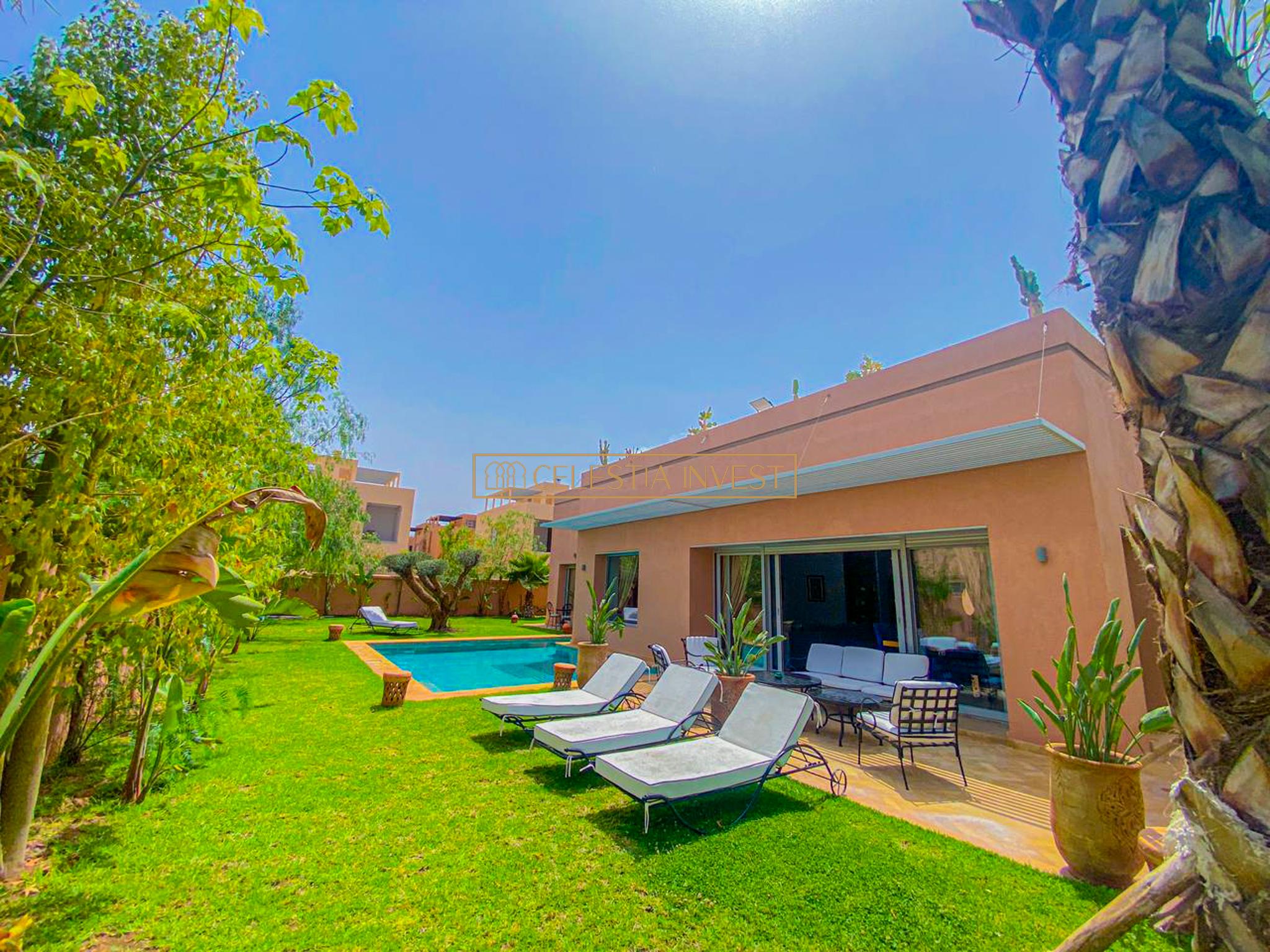 Belle villa à vendre sur la route de Tahanaout, construite sur un terrain de 1.000 m² avec une surface habitable de 500 m².