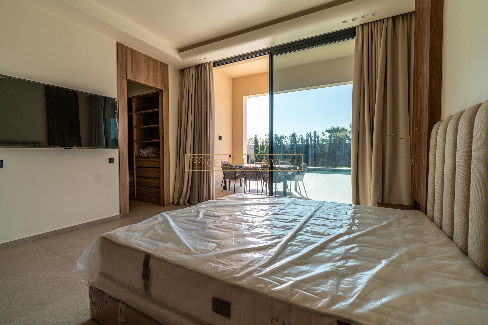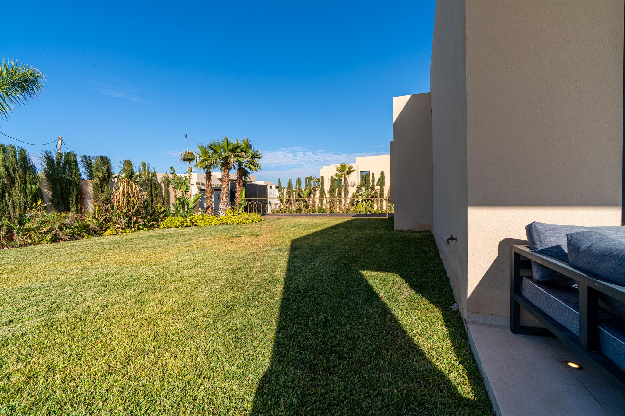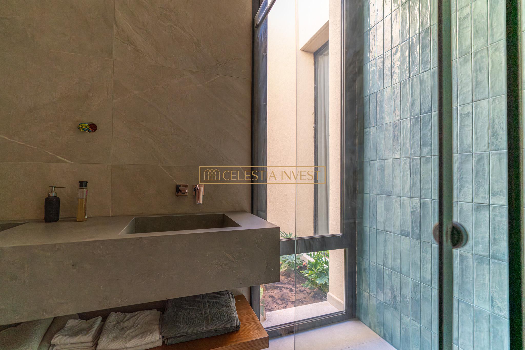 The outdoor spaces have been carefully designed to fully enjoy Marrakech’s sunny climate: a magnificent 19-meter swimming pool, a large landscaped and lawned garden, a covered terrace, a sun terrace, loungers, parasols, and a pleasant outdoor lounge. A jacuzzi completes this ideal setting for relaxation.