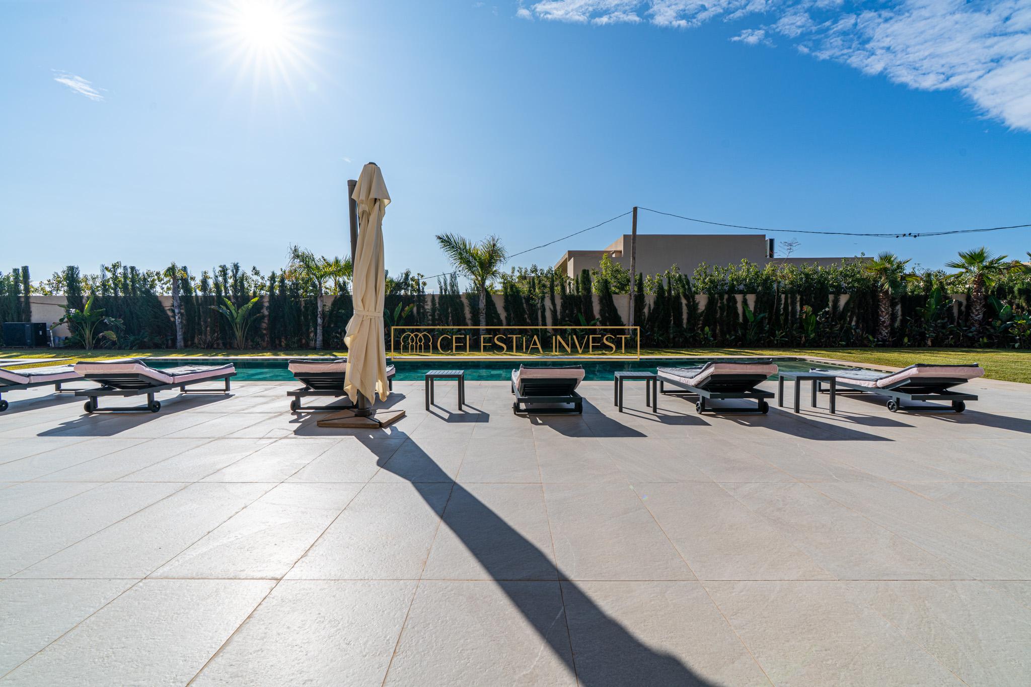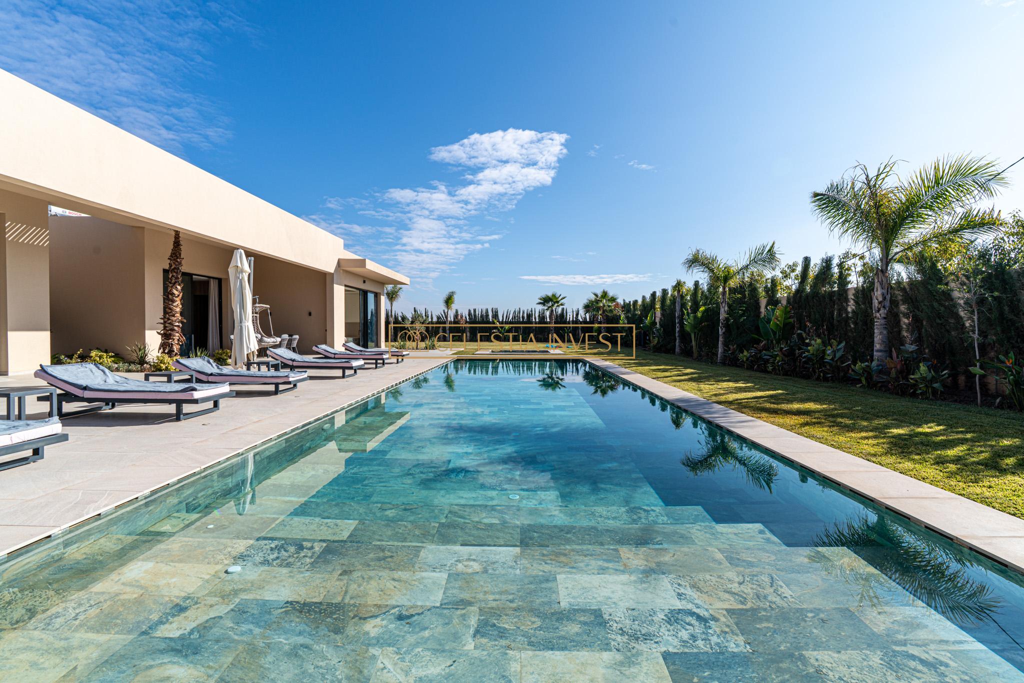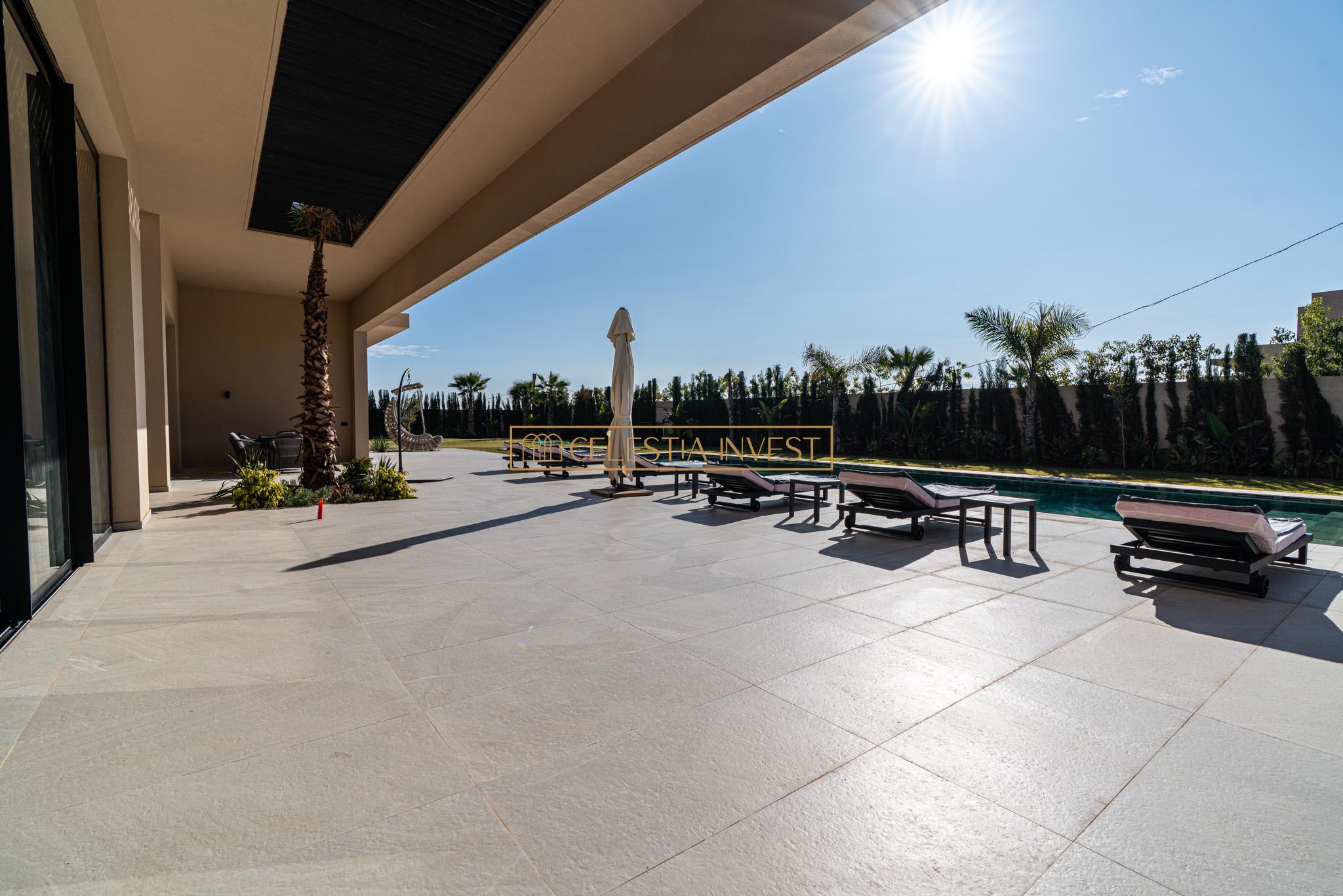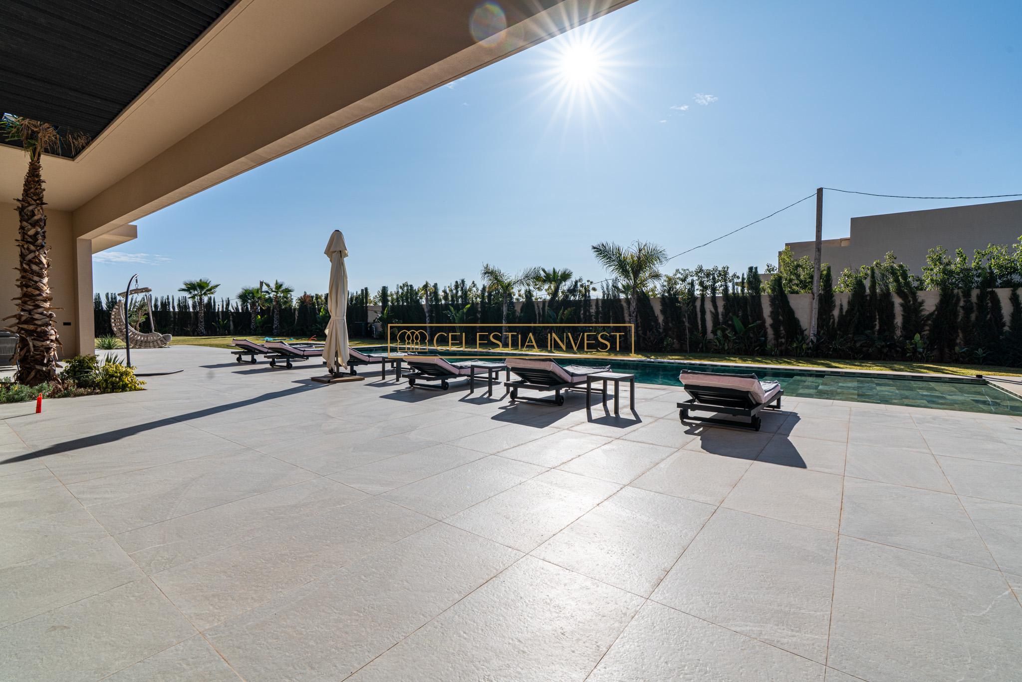 Located within a private and fully secured residence on the Ouarzazate road, just twenty minutes from downtown Marrakech, this superb single-storey villa offers an exceptional living environment combining comfort, modernity, and serenity. Built on a 2,126 m² plot and offering 307 m² of living space, it immediately charms with its warm atmosphere and generous volumes.