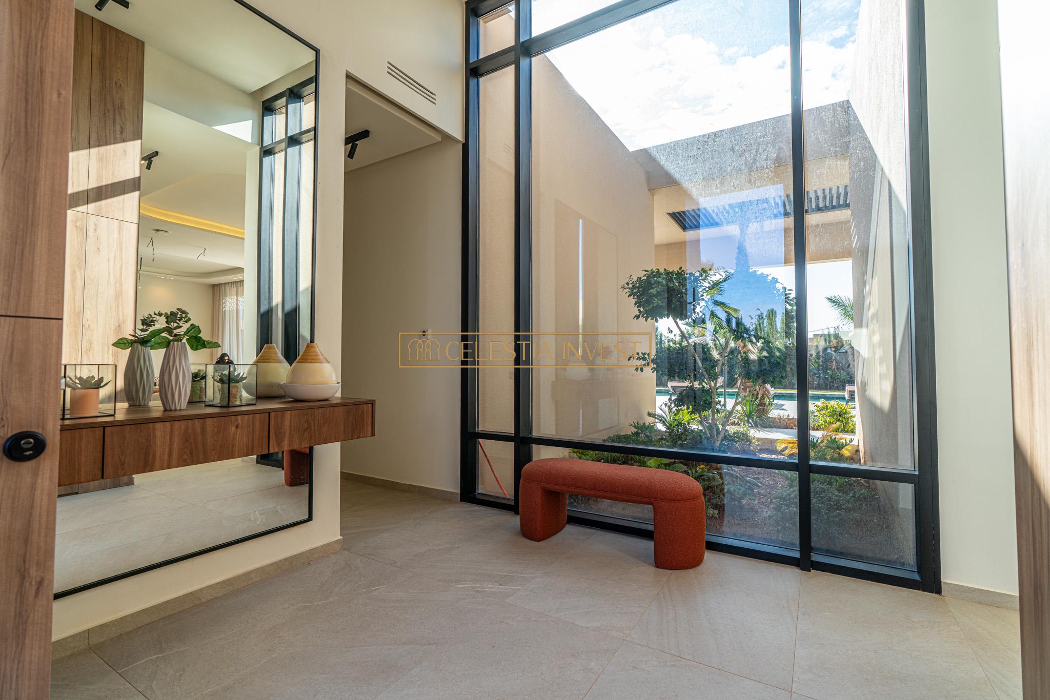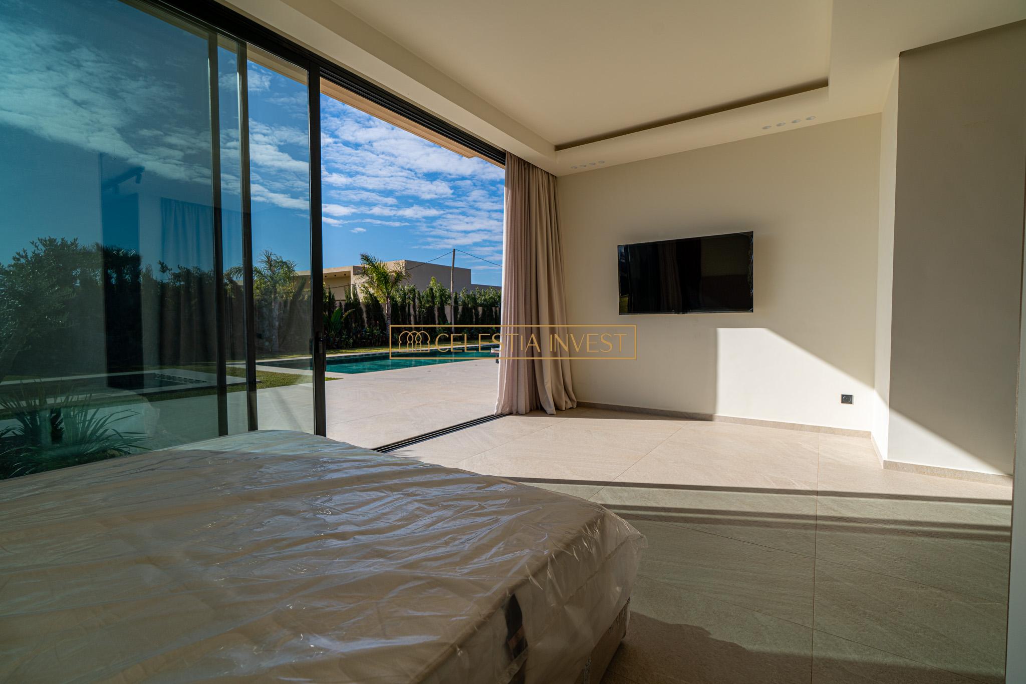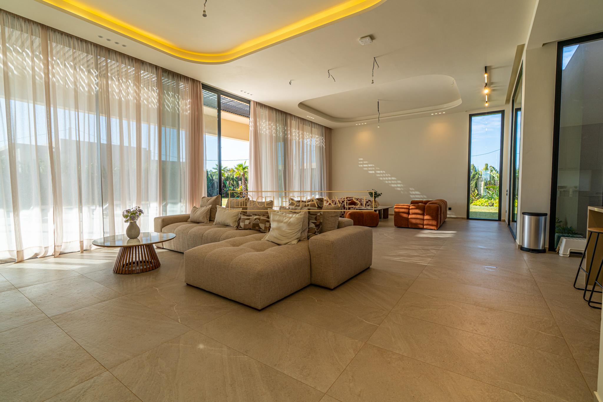 Located within a private and fully secured residence on the Ouarzazate road, just twenty minutes from downtown Marrakech, this superb single-storey villa offers an exceptional living environment combining comfort, modernity, and serenity. Built on a 2,126 m² plot and offering 307 m² of living space, it immediately charms with its warm atmosphere and generous volumes.