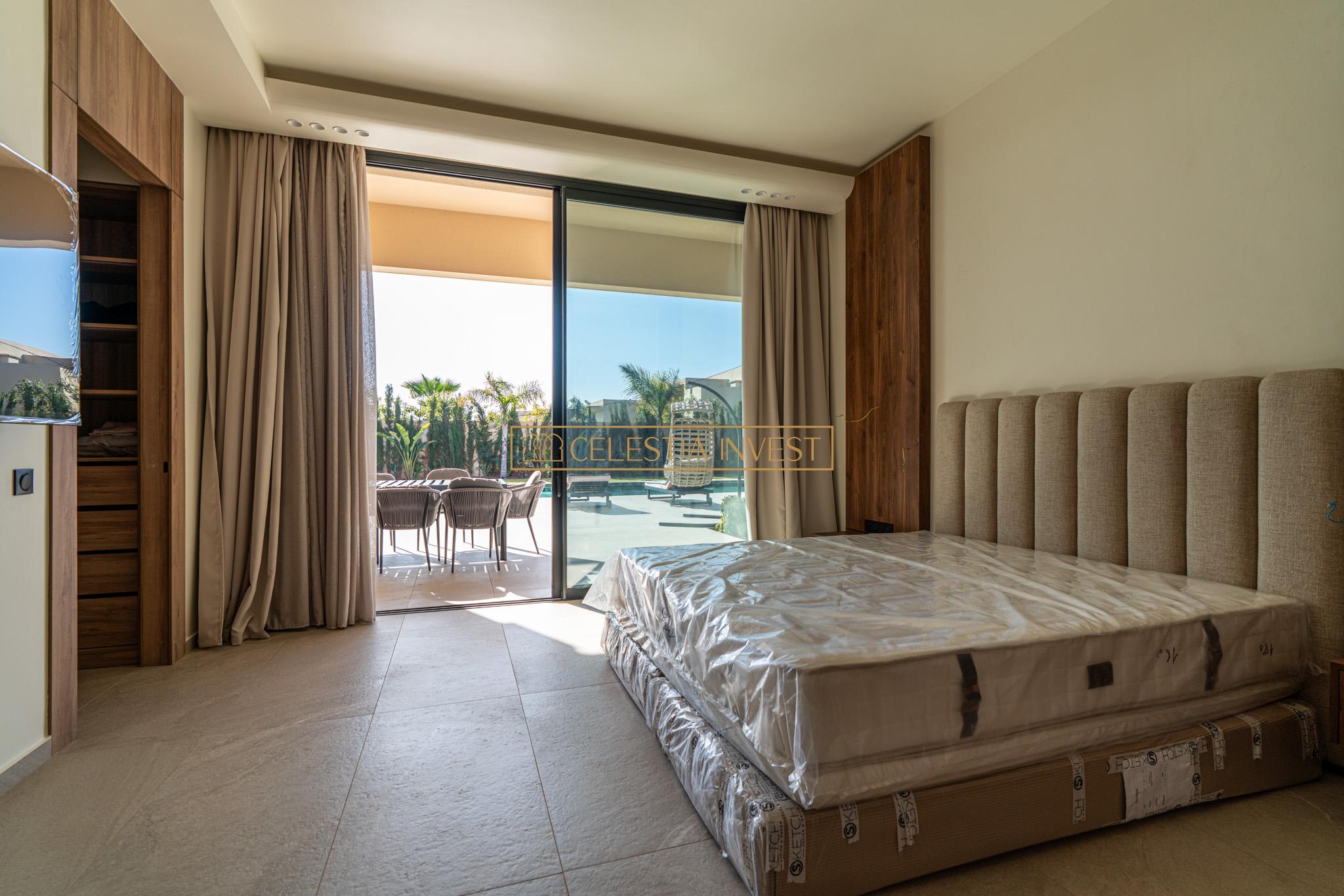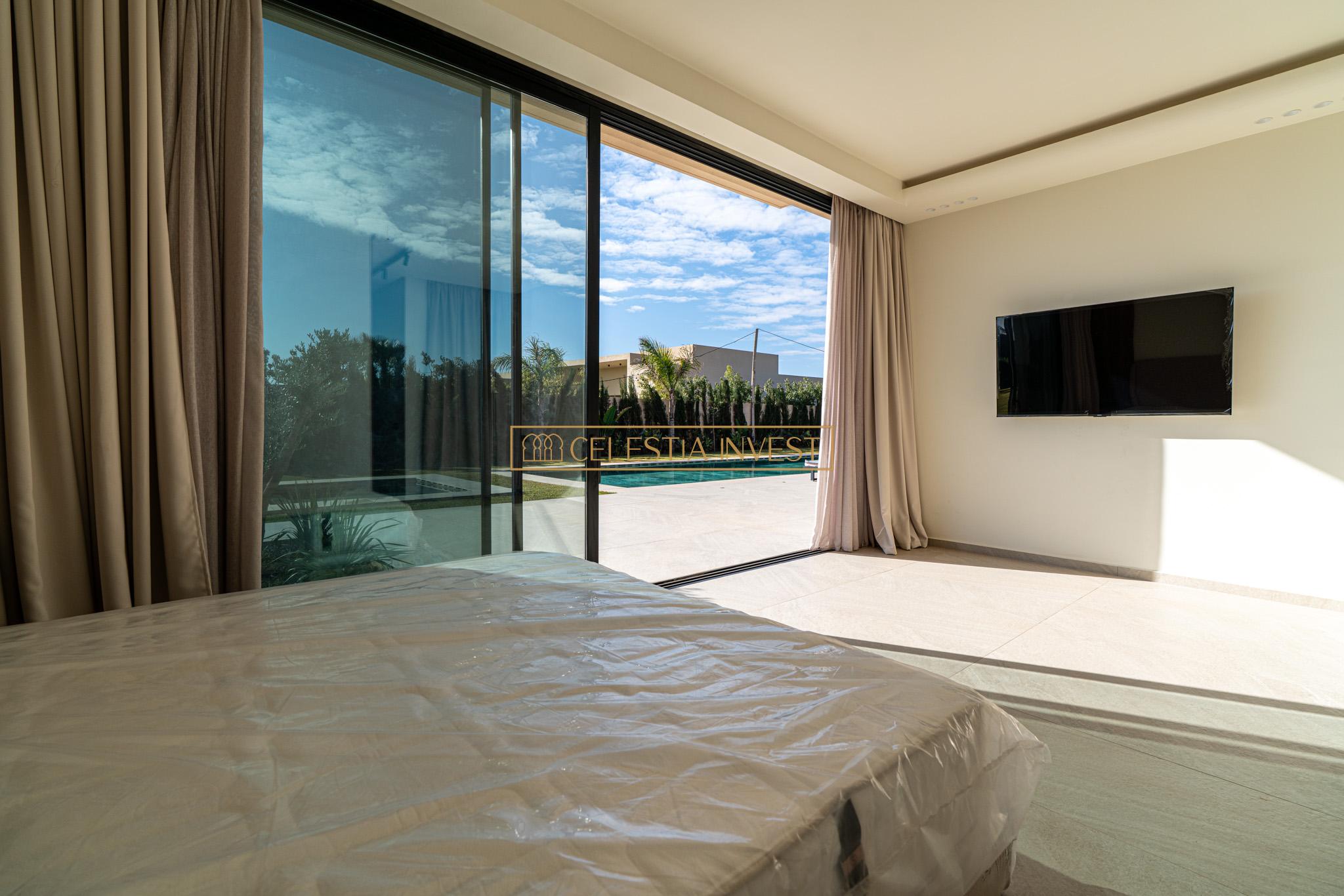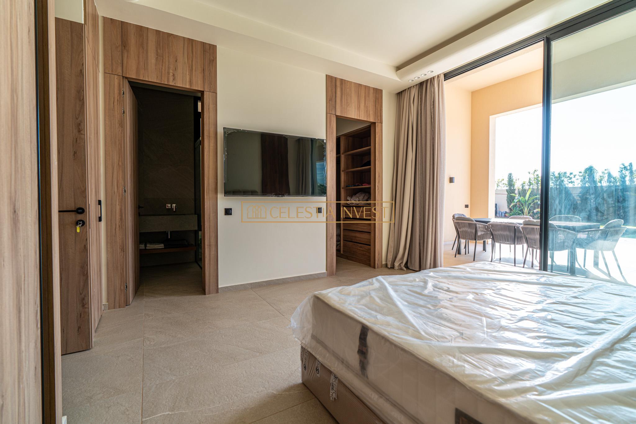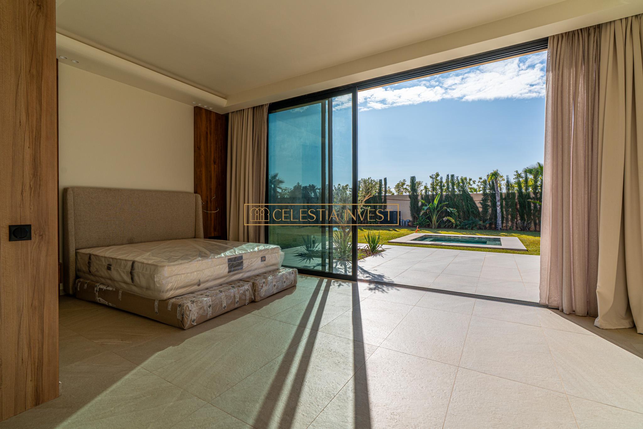Located within a private and fully secured residence on the Ouarzazate road, just twenty minutes from downtown Marrakech, this superb single-storey villa offers an exceptional living environment combining comfort, modernity, and serenity. Built on a 2,126 m² plot and offering 307 m² of living space, it immediately charms with its warm atmosphere and generous volumes.