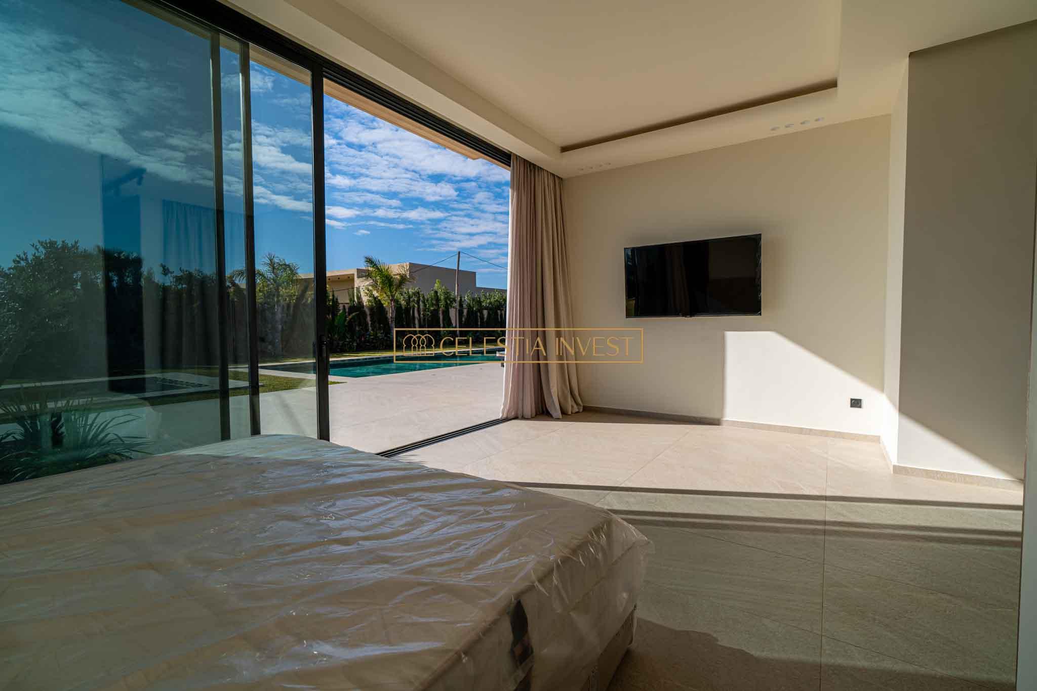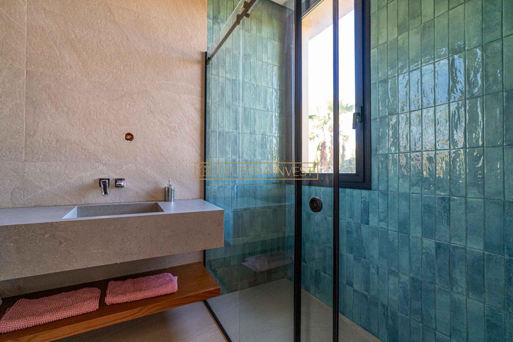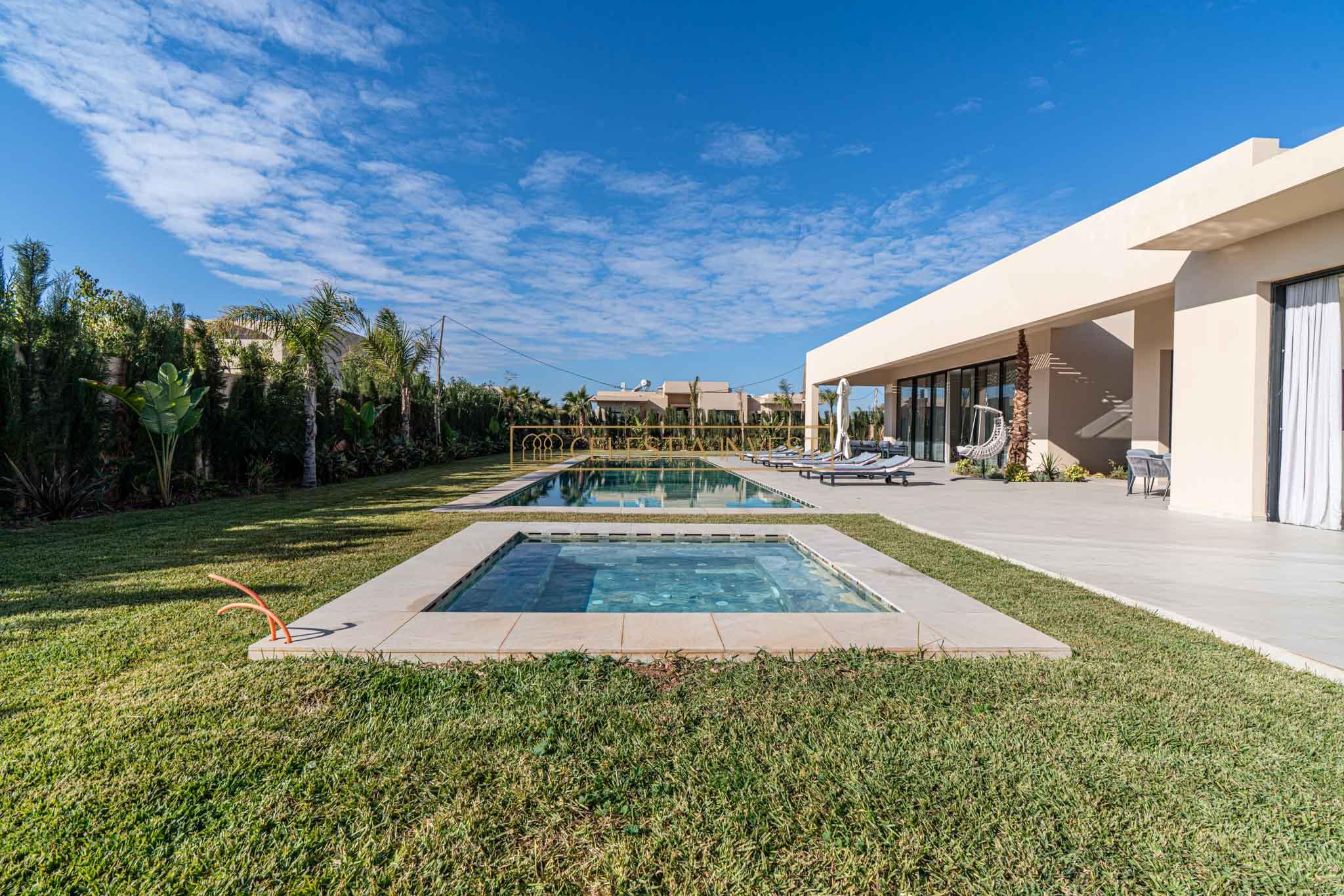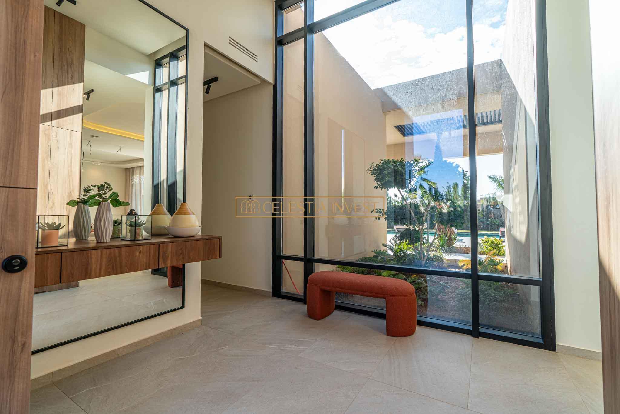 Située dans le secteur recherché de Sidi Abdellah Ghiat, à seulement 30 minutes du centre-ville de Marrakech, cette somptueuse villa de style beldi chic offre un cadre de vie exceptionnel, alliant authenticité marocaine, volumes généreux et prestations haut de gamme. Implantée sur un vaste terrain de 10.200 m², la propriété bénéficie d’un environnement naturel préservé, d’une tranquillité absolue et d’une vue dégagée sur les montagnes de l’Atlas. Le bien dispose d’une VNA validée, permettant une acquisition sécurisée et conforme à la réglementation en vigueur pour les acquéreurs étrangers. Dès l’entrée, la villa séduit par son architecture élégante et son organisation harmonieuse autour de patios et de terrasses. Les espaces de vie se distinguent par leurs beaux volumes et leur luminosité. Le double salon – séjour, agrémenté d’une cheminée, offre une atmosphère chaleureuse et conviviale, idéale pour recevoir. Un salon TV indépendant vient compléter ces espaces, tandis qu’une salle à manger intérieure élégante et une salle à manger extérieure permettent de profiter pleinement des repas en toute saison. Le salon extérieur, ouvert sur le jardin et la piscine, prolonge naturellement les espaces de vie vers l’extérieur. La cuisine entièrement équipée, fonctionnelle et moderne, répond parfaitement aux exigences d’une villa de standing. Une buanderie, un local de stockage ainsi que les locaux techniques assurent un confort d’organisation optimal au quotidien. La partie nuit se compose de quatre chambres confortables, pensées pour offrir intimité et sérénité, ainsi qu’une chambre de service. L’ensemble de la villa est équipé d’une climatisation réversible, garantissant un confort thermique optimal tout au long de l’année. Les extérieurs constituent l’un des atouts majeurs de cette propriété. Le jardin mature, richement arboré, entoure une magnifique piscine extérieure aménagée avec transats et parasols, invitant à la détente sous le soleil de Marrakech. De nombreuses terrasses, un solarium, une cour intérieure, ainsi qu’un élégant patio avec fontaine créent une véritable atmosphère de maison de campagne de luxe. La propriété dispose également d’un terrain de tennis privé, d’une salle de sport, et d’un puits, offrant une autonomie et des prestations rares sur le marché. Parfaitement équipée, la villa bénéficie de la sécurité, de la télévision, des chaînes câblées, d’un garage / parking privé, et d’espaces extérieurs soigneusement aménagés, permettant de profiter pleinement du climat et du cadre naturel exceptionnel. Cette villa à vendre à Sidi Abdellah Ghiat représente une opportunité rare sur le marché immobilier de Marrakech. Idéale en résidence principale, résidence secondaire ou pour un investissement immobilier de prestige, elle séduit par son emplacement, son hectare de terrain, son style beldi chic et ses prestations complètes dans un environnement naturel d’exception face à l’Atlas.