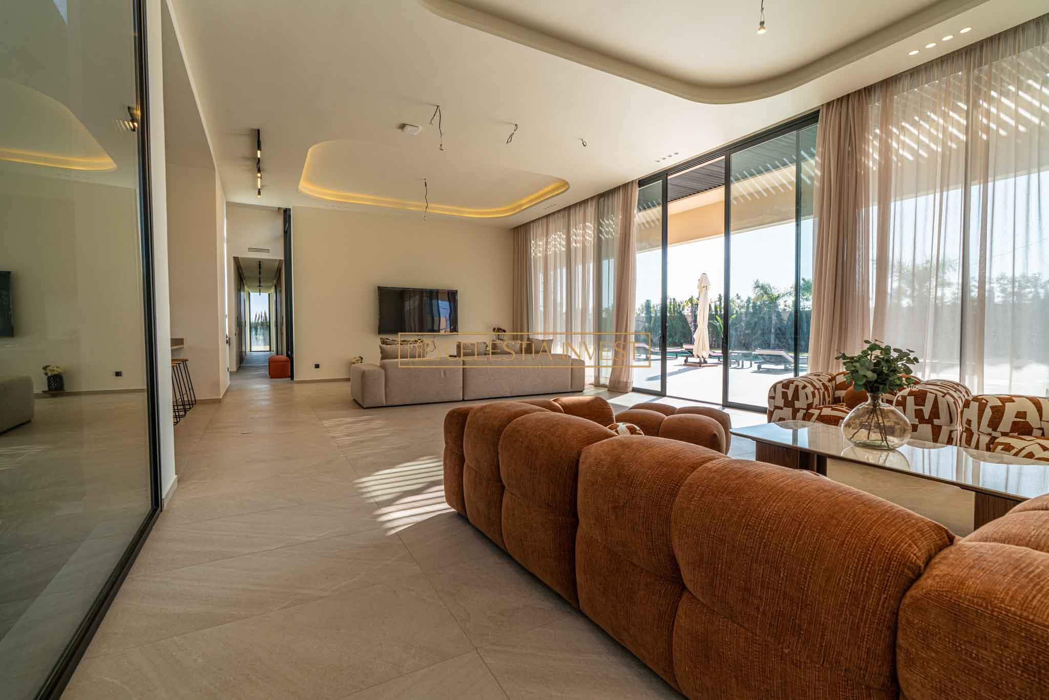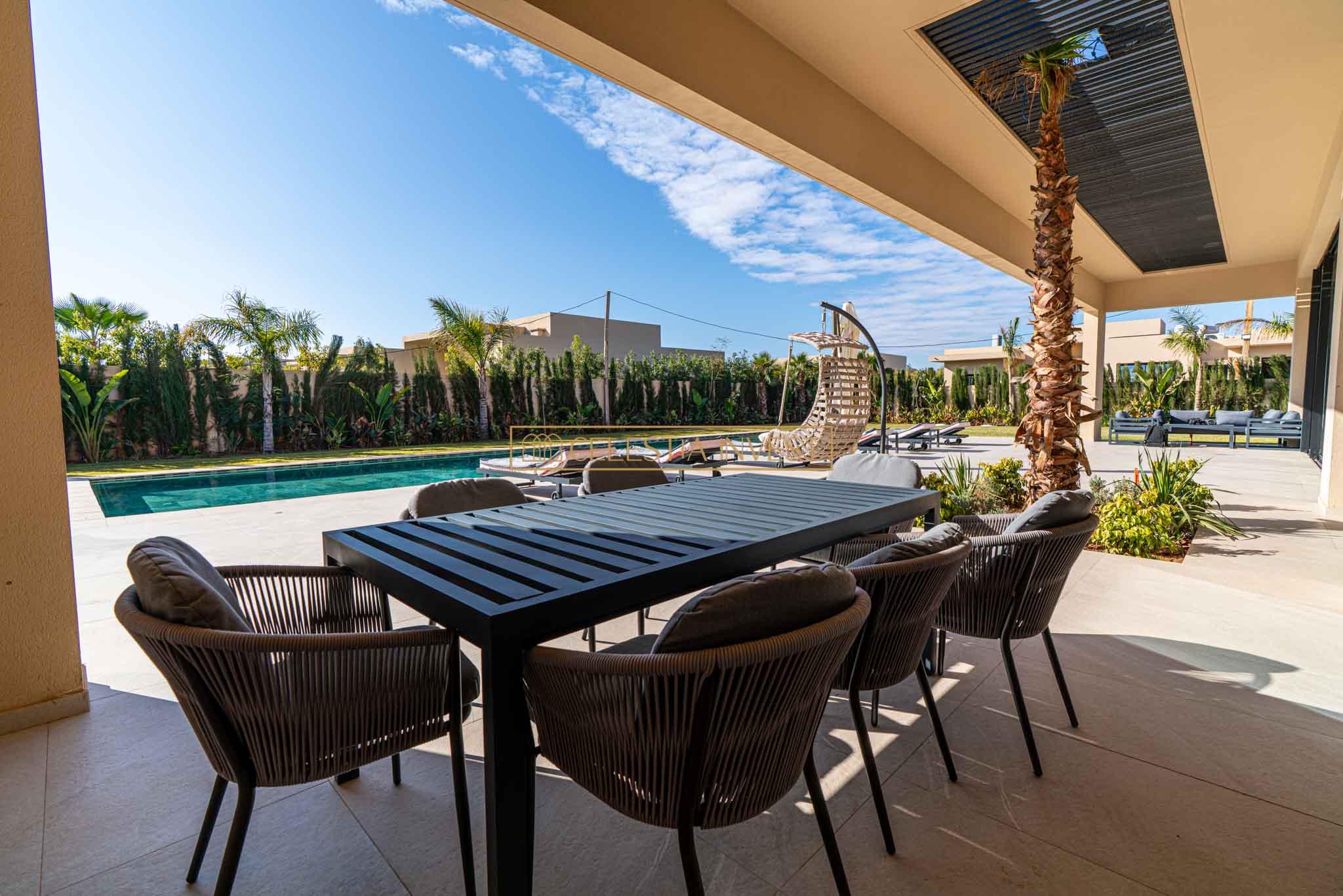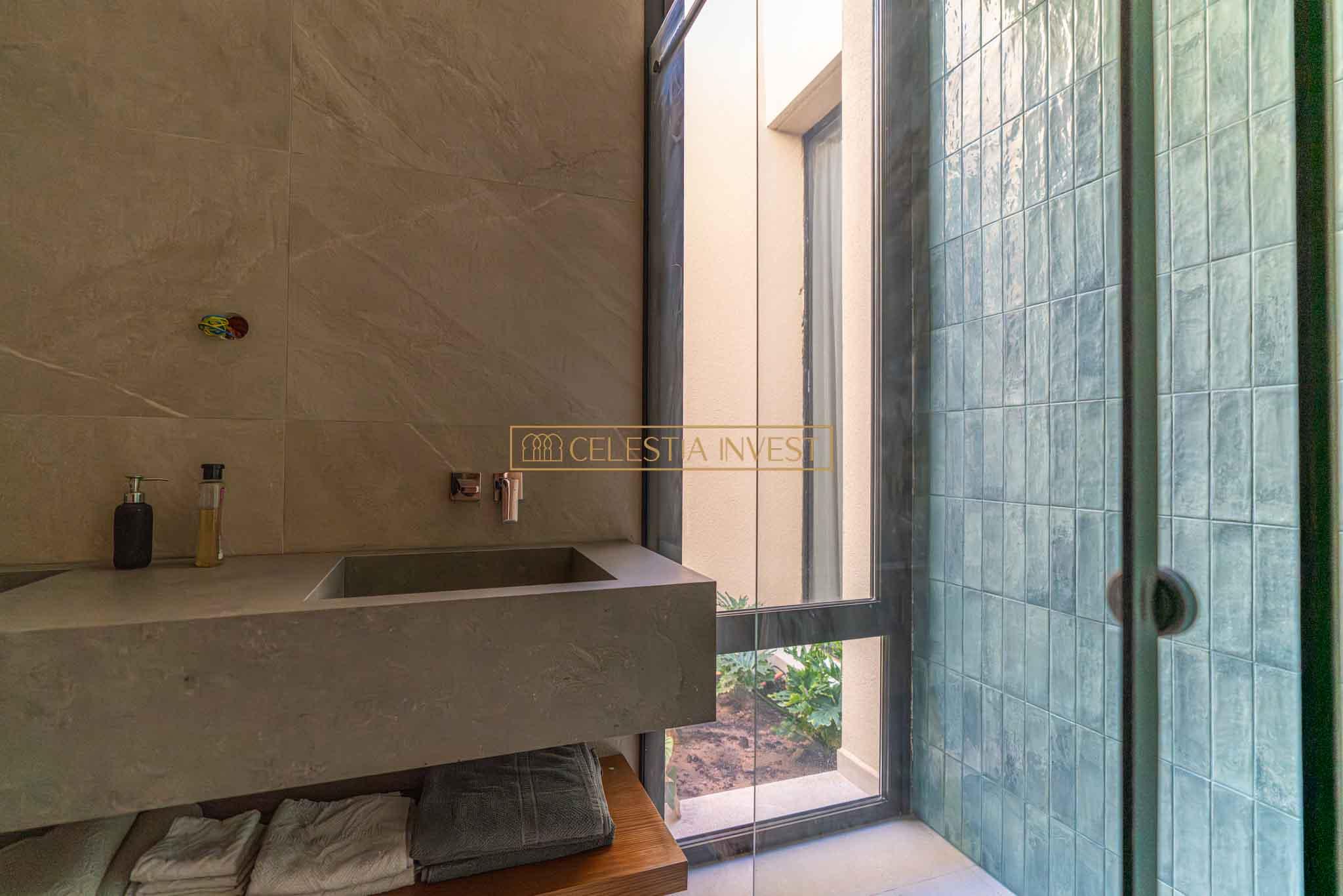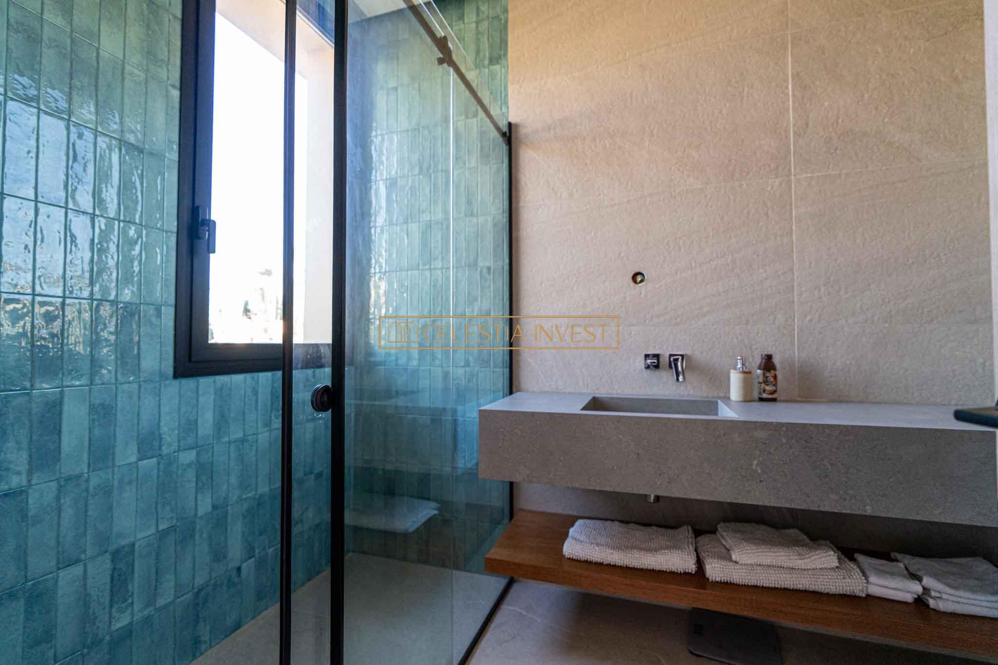 Située dans le secteur recherché de Sidi Abdellah Ghiat, à seulement 30 minutes du centre-ville de Marrakech, cette somptueuse villa de style beldi chic offre un cadre de vie exceptionnel, alliant authenticité marocaine, volumes généreux et prestations haut de gamme. Implantée sur un vaste terrain de 10.200 m², la propriété bénéficie d’un environnement naturel préservé, d’une tranquillité absolue et d’une vue dégagée sur les montagnes de l’Atlas. Le bien dispose d’une VNA validée, permettant une acquisition sécurisée et conforme à la réglementation en vigueur pour les acquéreurs étrangers. Dès l’entrée, la villa séduit par son architecture élégante et son organisation harmonieuse autour de patios et de terrasses. Les espaces de vie se distinguent par leurs beaux volumes et leur luminosité. Le double salon – séjour, agrémenté d’une cheminée, offre une atmosphère chaleureuse et conviviale, idéale pour recevoir. Un salon TV indépendant vient compléter ces espaces, tandis qu’une salle à manger intérieure élégante et une salle à manger extérieure permettent de profiter pleinement des repas en toute saison. Le salon extérieur, ouvert sur le jardin et la piscine, prolonge naturellement les espaces de vie vers l’extérieur. La cuisine entièrement équipée, fonctionnelle et moderne, répond parfaitement aux exigences d’une villa de standing. Une buanderie, un local de stockage ainsi que les locaux techniques assurent un confort d’organisation optimal au quotidien. La partie nuit se compose de quatre chambres confortables, pensées pour offrir intimité et sérénité, ainsi qu’une chambre de service. L’ensemble de la villa est équipé d’une climatisation réversible, garantissant un confort thermique optimal tout au long de l’année. Les extérieurs constituent l’un des atouts majeurs de cette propriété. Le jardin mature, richement arboré, entoure une magnifique piscine extérieure aménagée avec transats et parasols, invitant à la détente sous le soleil de Marrakech. De nombreuses terrasses, un solarium, une cour intérieure, ainsi qu’un élégant patio avec fontaine créent une véritable atmosphère de maison de campagne de luxe. La propriété dispose également d’un terrain de tennis privé, d’une salle de sport, et d’un puits, offrant une autonomie et des prestations rares sur le marché. Parfaitement équipée, la villa bénéficie de la sécurité, de la télévision, des chaînes câblées, d’un garage / parking privé, et d’espaces extérieurs soigneusement aménagés, permettant de profiter pleinement du climat et du cadre naturel exceptionnel. Cette villa à vendre à Sidi Abdellah Ghiat représente une opportunité rare sur le marché immobilier de Marrakech. Idéale en résidence principale, résidence secondaire ou pour un investissement immobilier de prestige, elle séduit par son emplacement, son hectare de terrain, son style beldi chic et ses prestations complètes dans un environnement naturel d’exception face à l’Atlas.