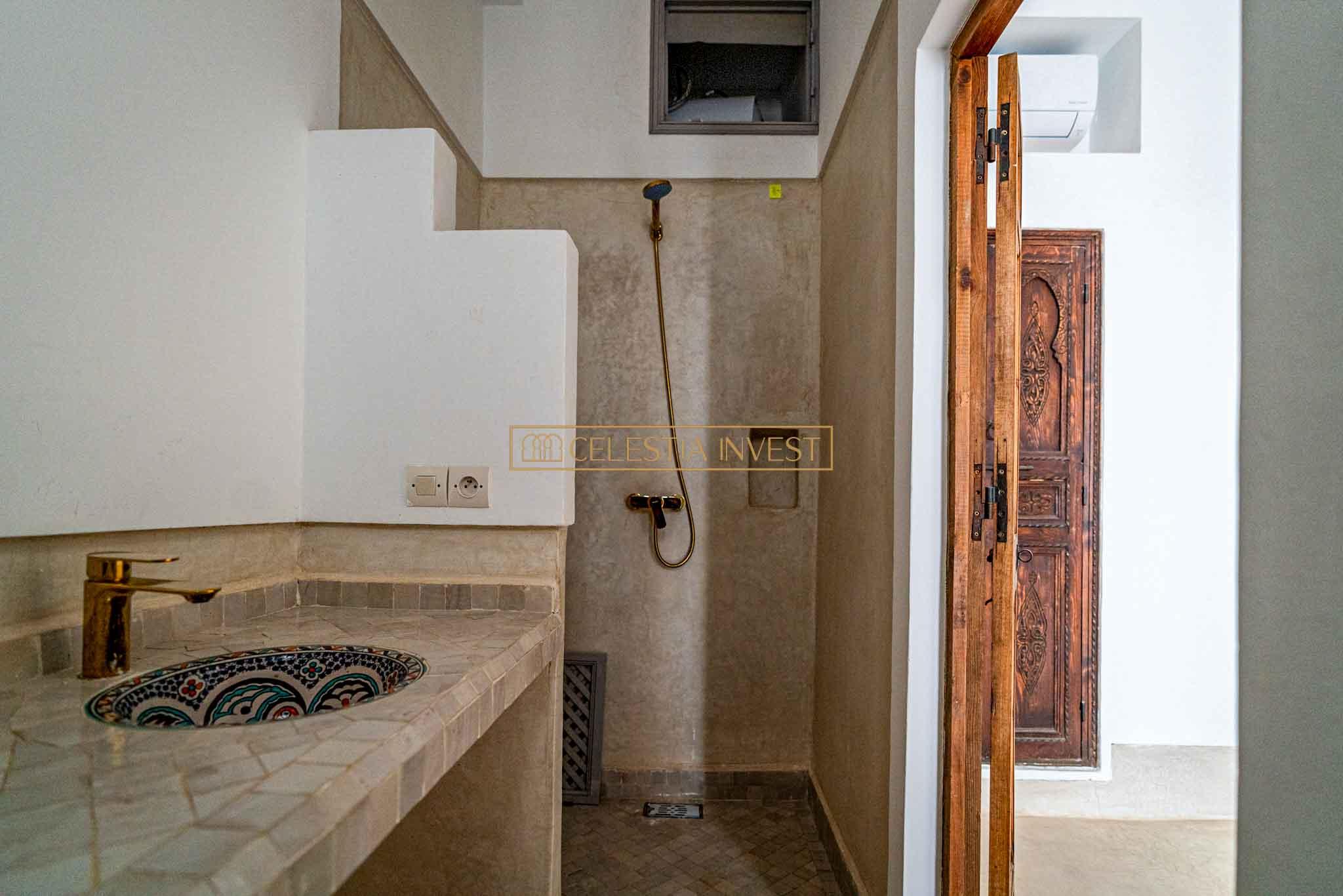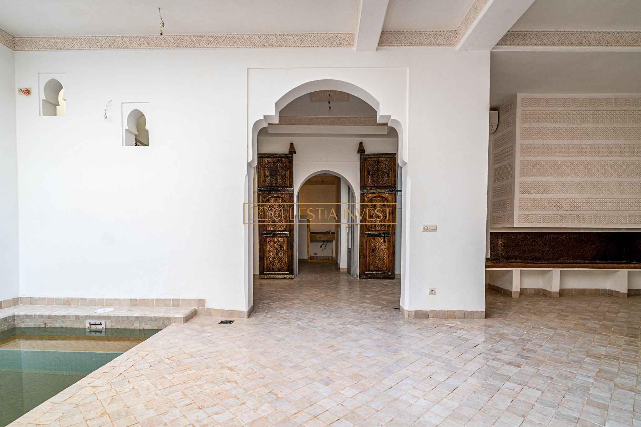 Découvrez ce riad magnifique situé au cœur de la Kasba à Marrakech. Avec ses cinq chambres spacieuses et sept pièces élégantes, cette propriété offre un cadre de vie exceptionnel. Profitez du confort moderne avec une climatisation performante et une ambiance chaleureuse grâce à sa cheminée traditionnelle. Ce riad se distingue par sa piscine intérieure, un véritable havre de paix pour se détendre loin de l'agitation de la ville. La disposition des pièces est idéale pour recevoir, avec de grands espaces ouverts et une architecture marocaine raffinée qui met en valeur chaque détail. C'est l'endroit parfait pour organiser des réceptions ou simplement profiter de moments en famille. La localisation de ce bien est également un atout majeur. Situé dans un quartier prisé de Marrakech, à proximité des attractions principales, il combine à merveille authenticité et modernité. Ne manquez pas cette occasion unique de devenir propriétaire d'une pièce de l'histoire marocaine, harmonieusement intégrée dans un cadre de vie luxueux.