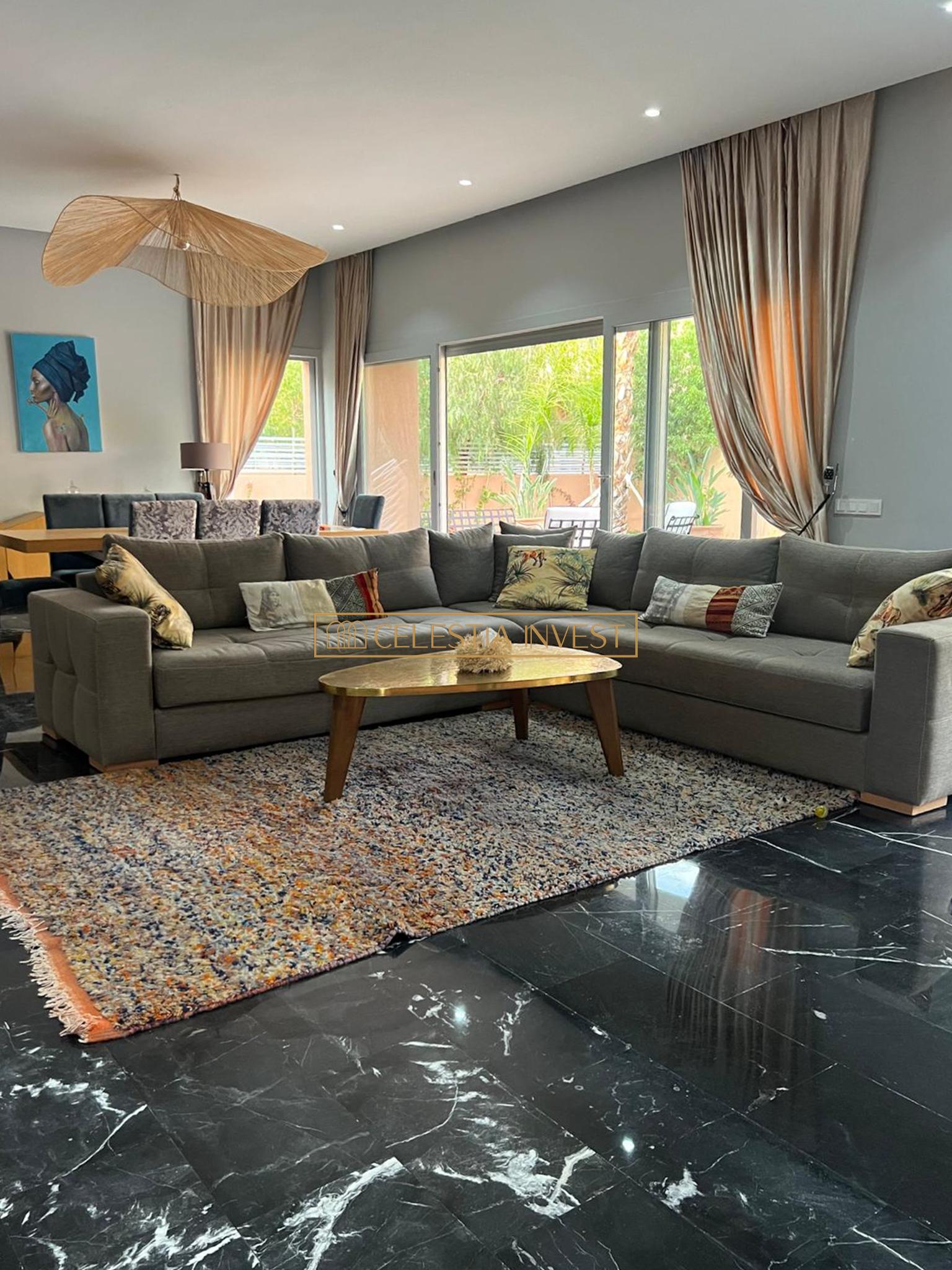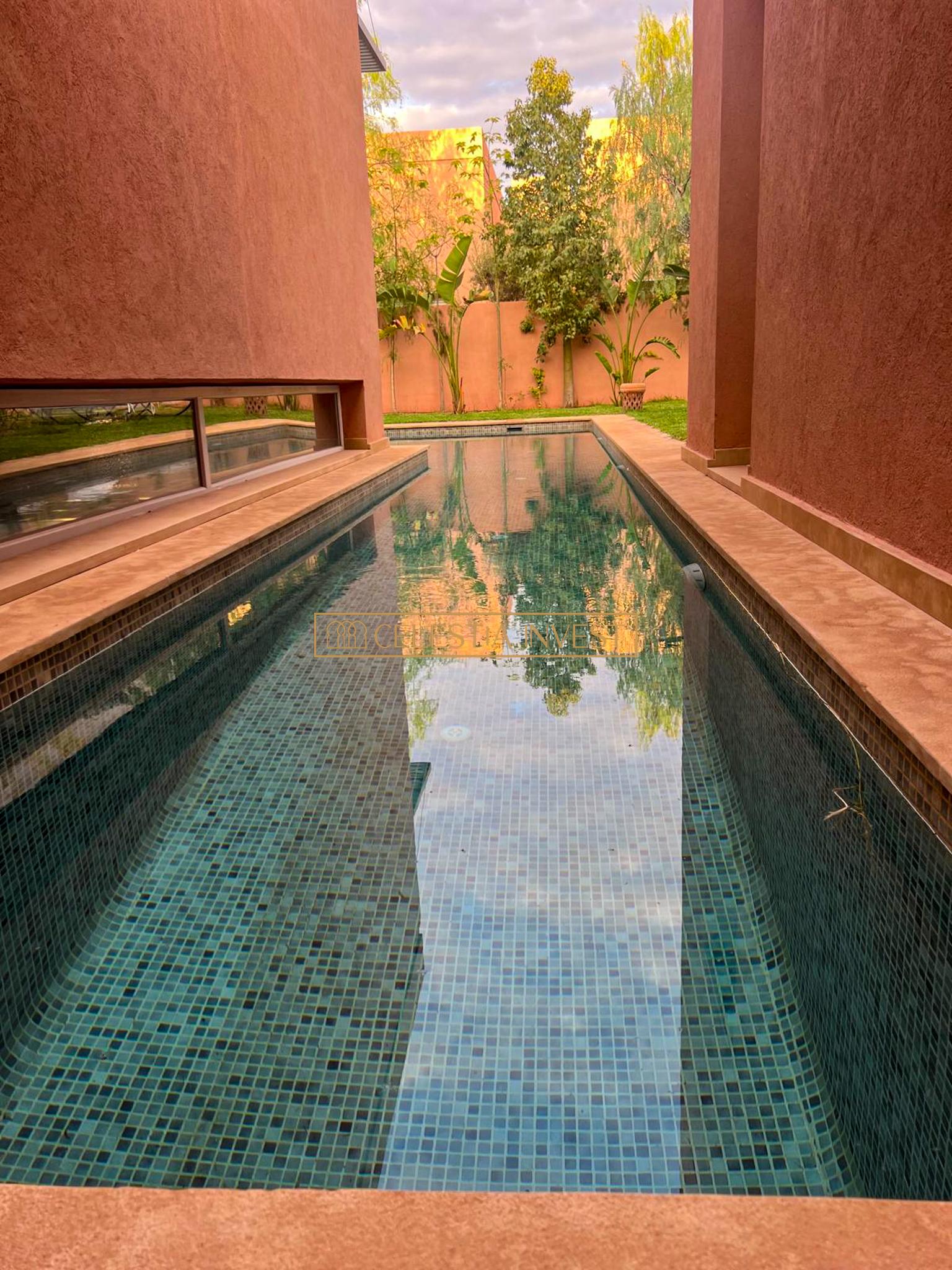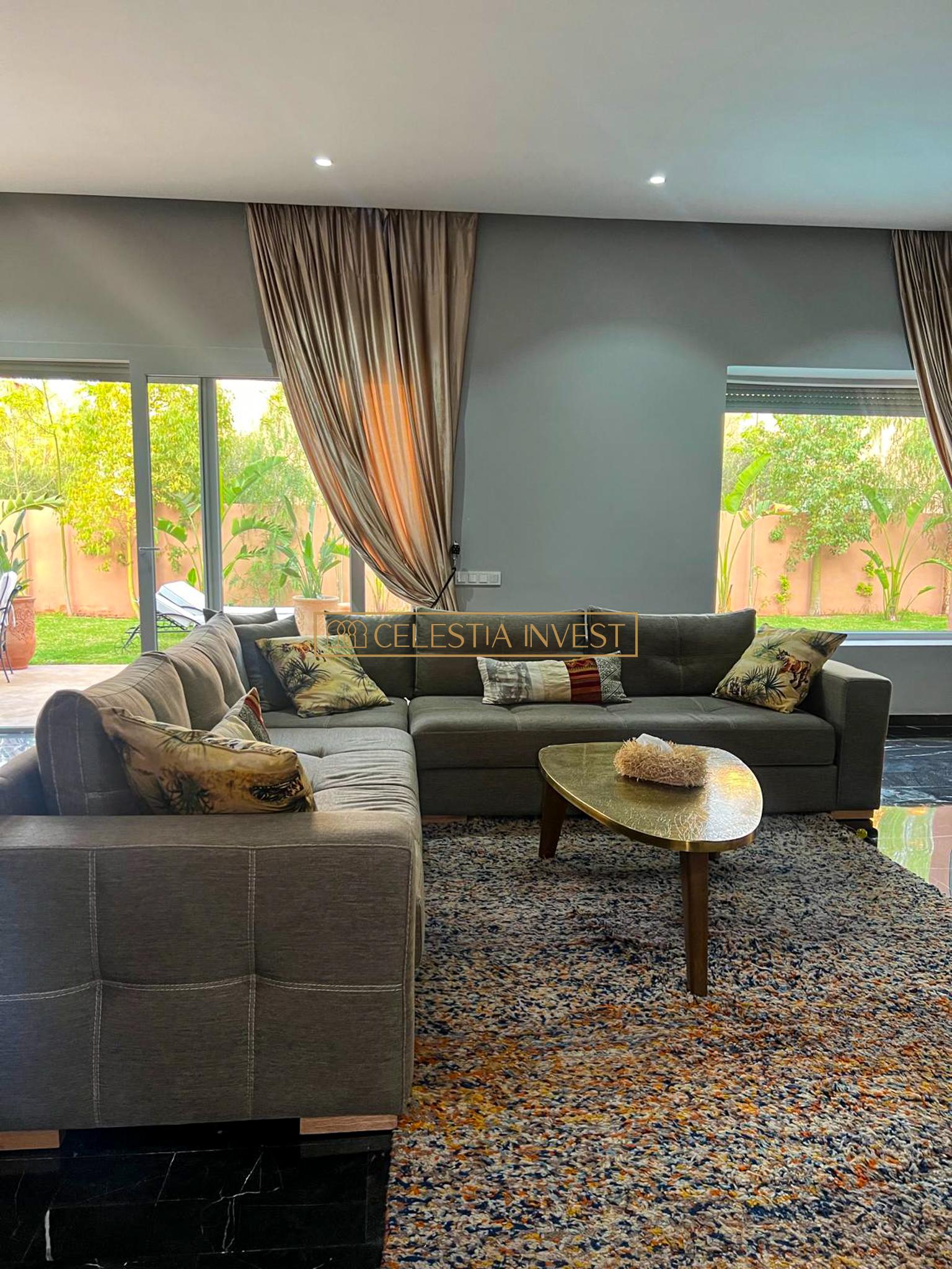 Belle villa à vendre sur la route de Tahanaout, construite sur un terrain de 1.000 m² avec une surface habitable de 500 m². Elle comprend 5 chambres et 5 salles de bains, ainsi que 2 séjours spacieux baignés de lumière naturelle. La cuisine équipée s’ouvre sur le jardin et la piscine, créant un espace convivial et harmonieux. Située dans un environnement calme et agréable, cette propriété offre un cadre idéal pour une résidence familiale ou une maison de vacances.