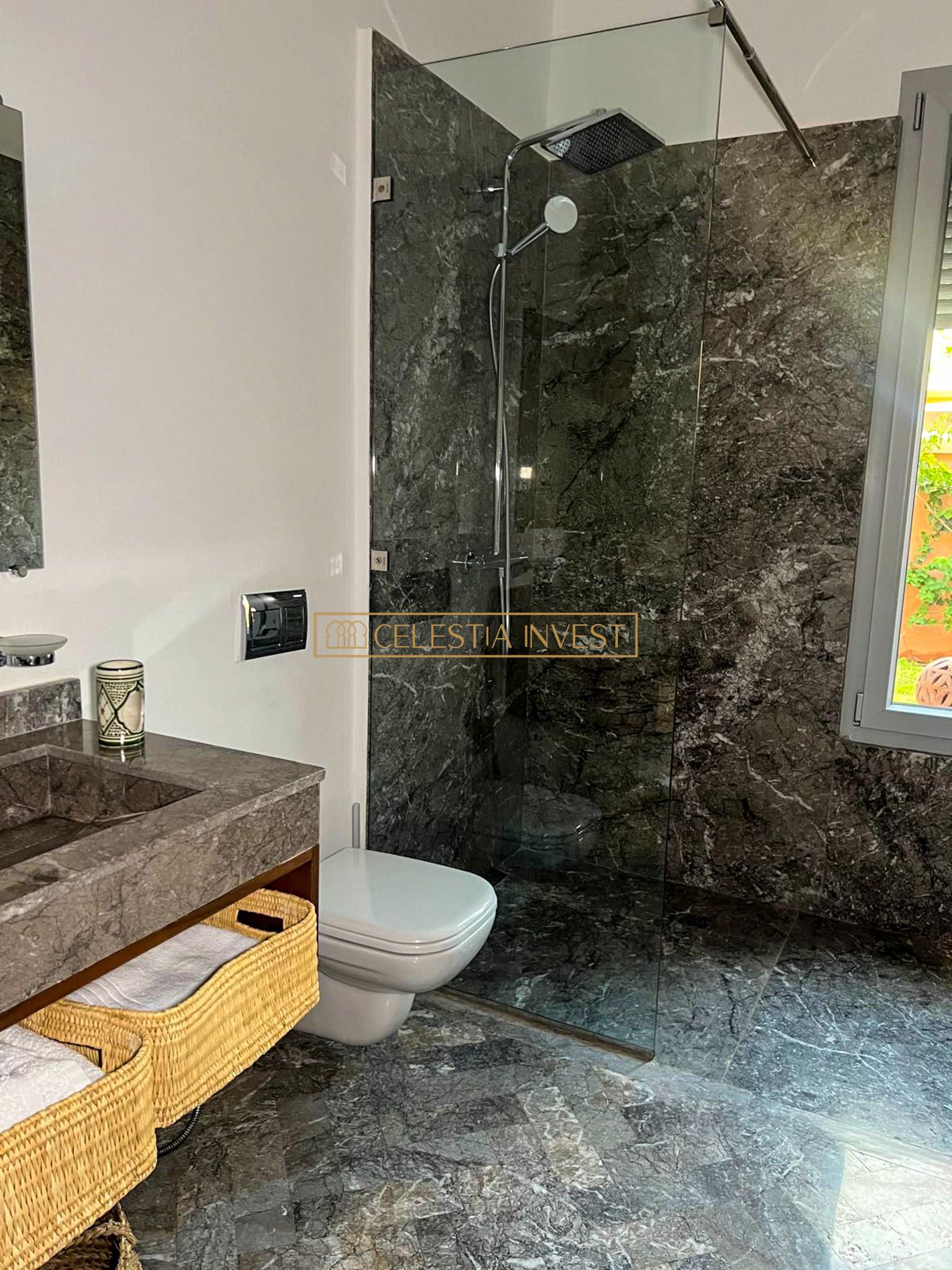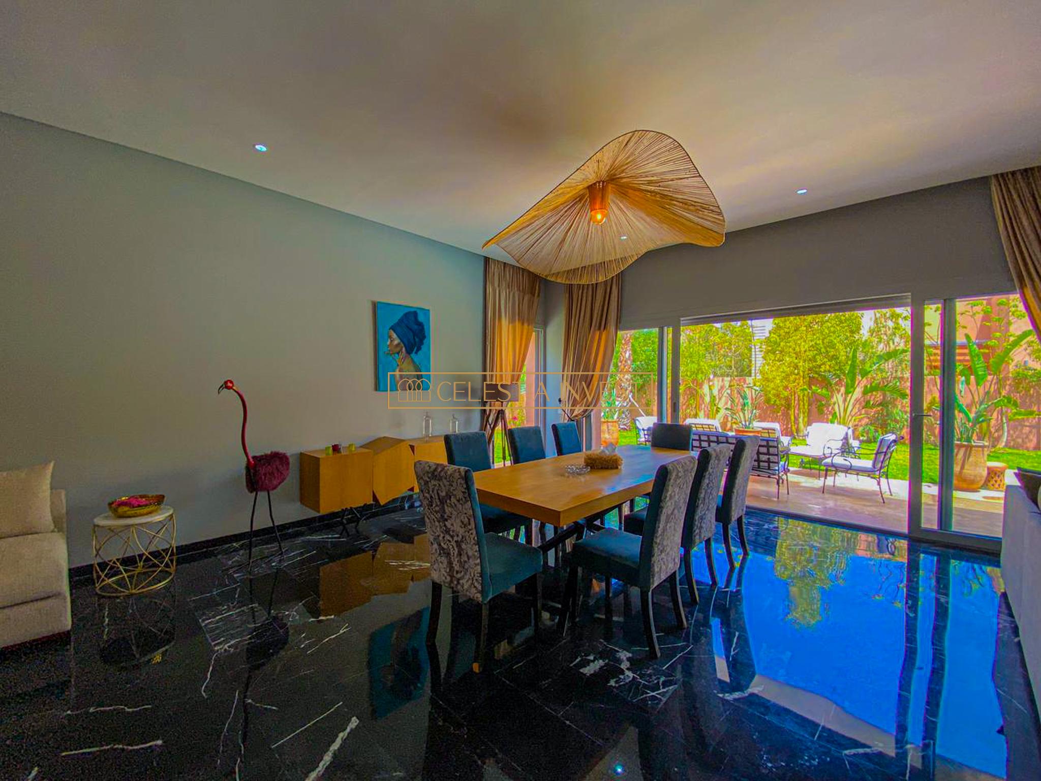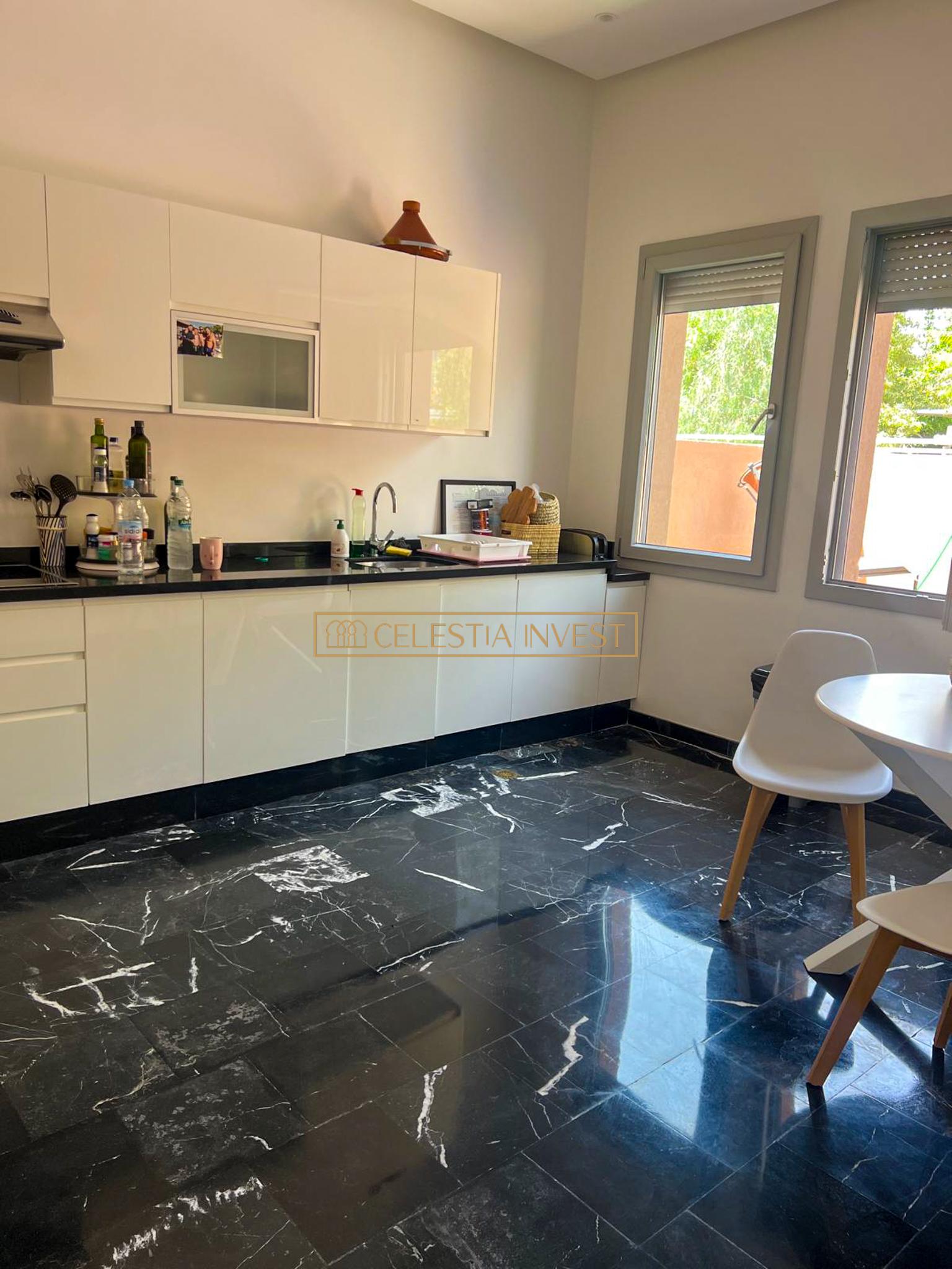 Belle villa à vendre sur la route de Tahanaout, construite sur un terrain de 1.000 m² avec une surface habitable de 500 m². Elle comprend 5 chambres et 5 salles de bains, ainsi que 2 séjours spacieux baignés de lumière naturelle. La cuisine équipée s’ouvre sur le jardin et la piscine, créant un espace convivial et harmonieux. Située dans un environnement calme et agréable, cette propriété offre un cadre idéal pour une résidence familiale ou une maison de vacances.
