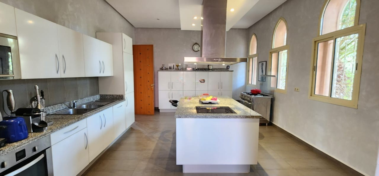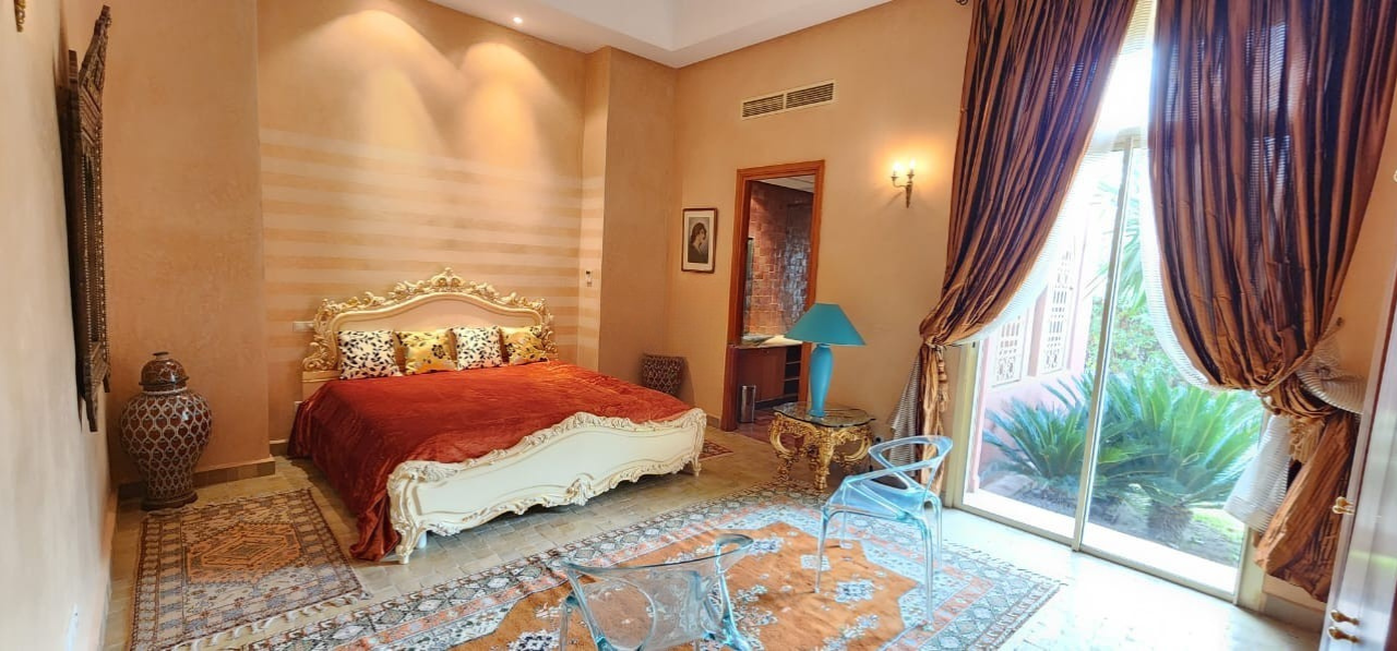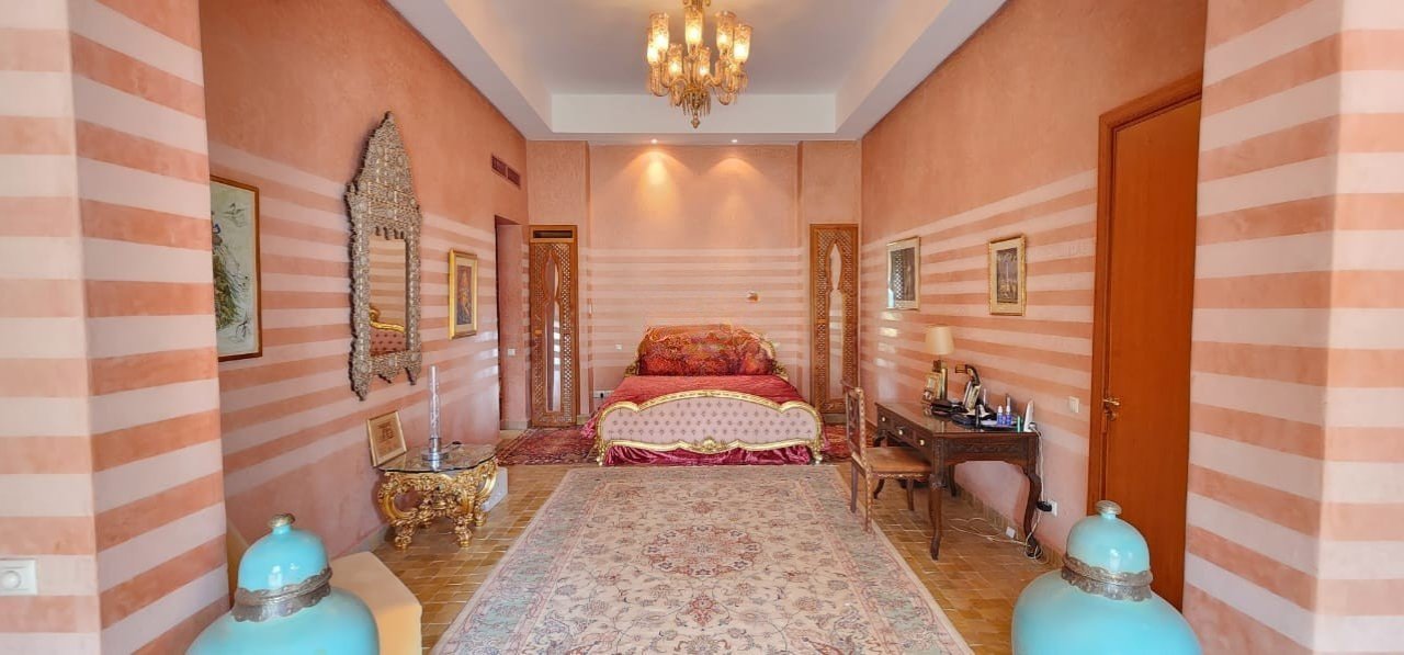 Située dans le secteur recherché de Sidi Abdellah Ghiat, à seulement 30 minutes du centre-ville de Marrakech, cette somptueuse villa de style beldi chic offre un cadre de vie exceptionnel, alliant authenticité marocaine, volumes généreux et prestations haut de gamme. Implantée sur un vaste terrain de 10.200 m², la propriété bénéficie d’un environnement naturel préservé, d’une tranquillité absolue et d’une vue dégagée sur les montagnes de l’Atlas. Le bien dispose d’une VNA validée, permettant une acquisition sécurisée et conforme à la réglementation en vigueur pour les acquéreurs étrangers.